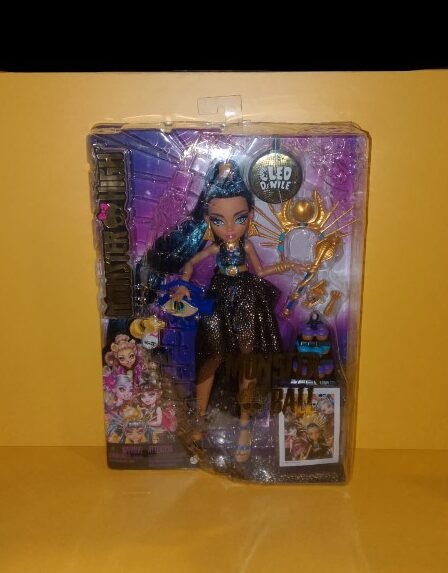 ¡La muñeca Cleo De Nile llega al Baile de Monstruos con estilo! Luce un atuendo de fiesta que sin duda causará sensación en la pista de baile de Monster High.