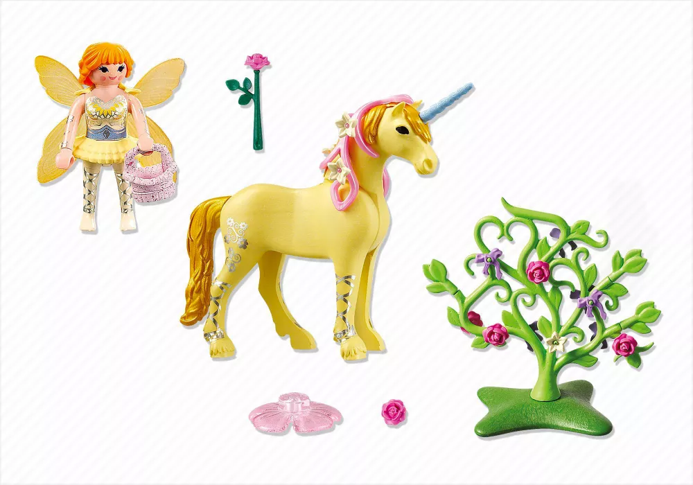 La unicornio Flor pasea por el parque y se encuentra con el hada del jardín Playmobil 5442. ¡Qué bonita está con todas sus flores!