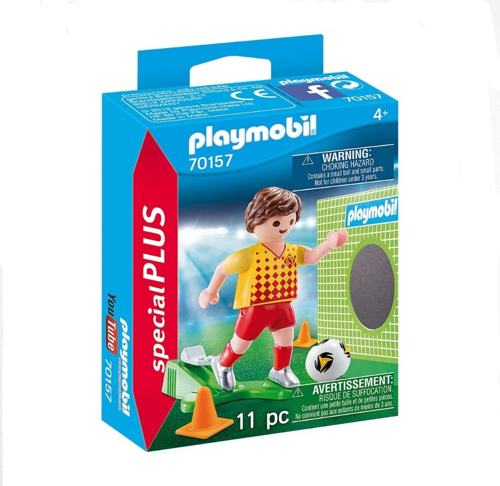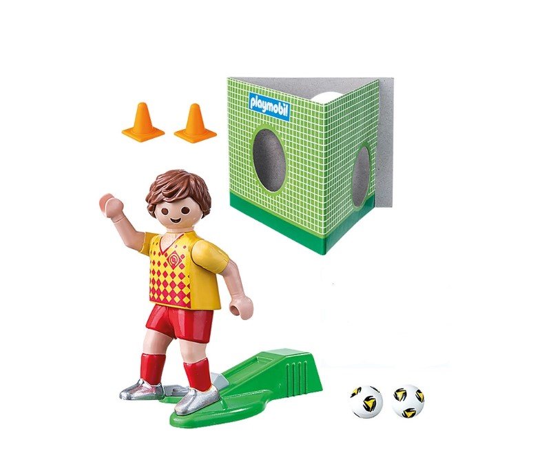 Continua con la pasión del fútbol con este set de juego que Playmobil trae para ti, con este jugador podrás ponerlo a practicar sus tiros libres e intentar anotar un gol en la portería (incluido).